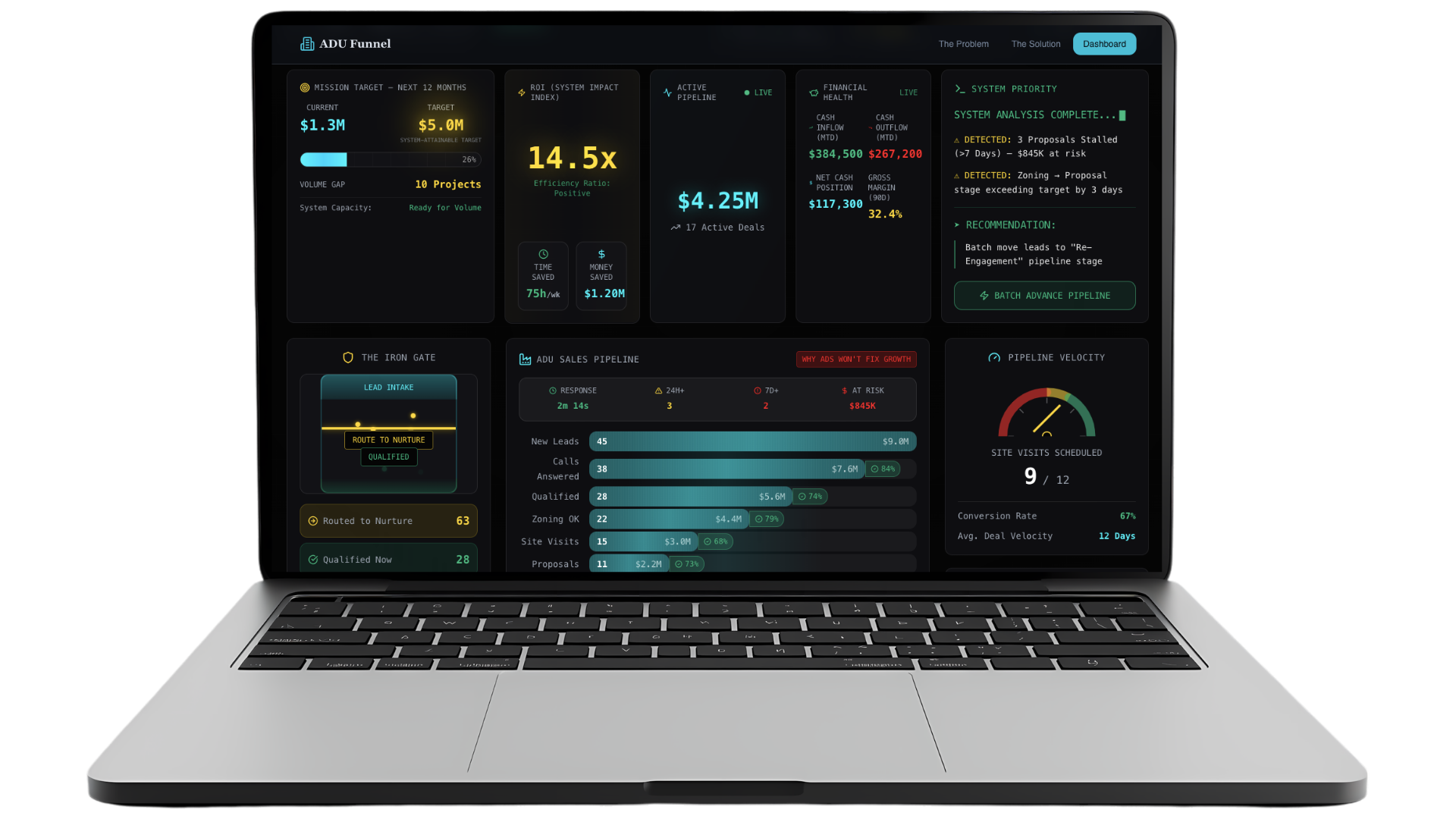 Most contractor websites are digital brochures — they look decent and do nothing when someone lands at 10pm wondering if you’re the right fit. We replace yours with a live conversion engine.