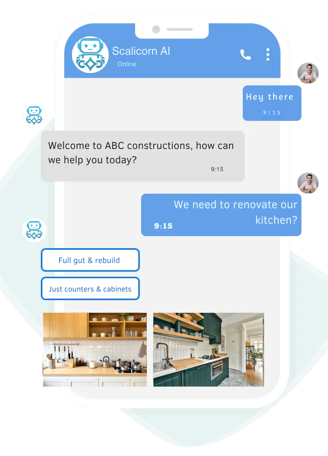 It’s built for construction. Pre-loaded conversation flows for new project inquiries, budget qualification, site visit booking, project status updates, and review requests. We customize everything to your specific services, service area, and the way you talk to clients.