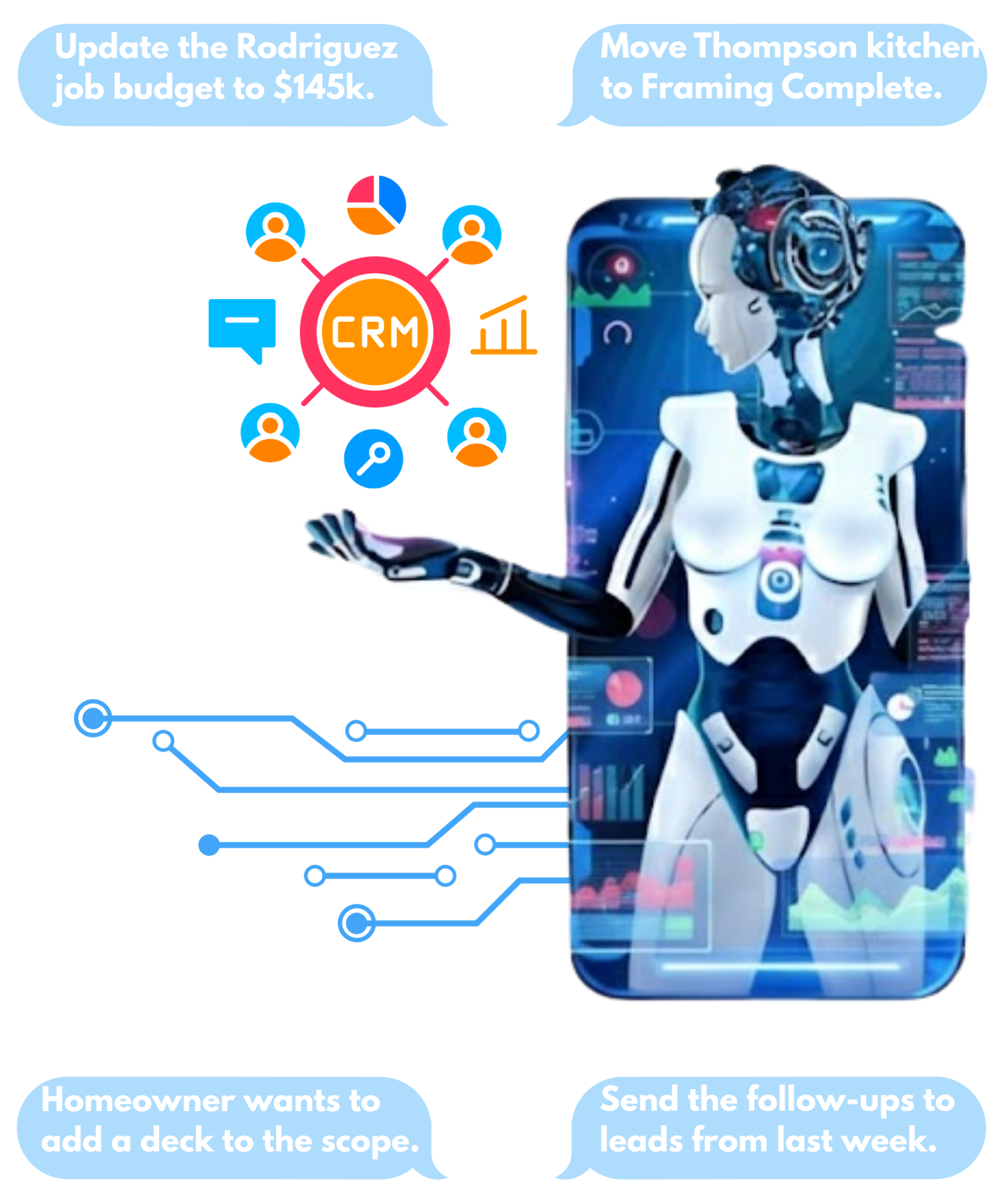 No more digging through texts, emails, and spreadsheets to figure out where a job stands or what a lead said last week.